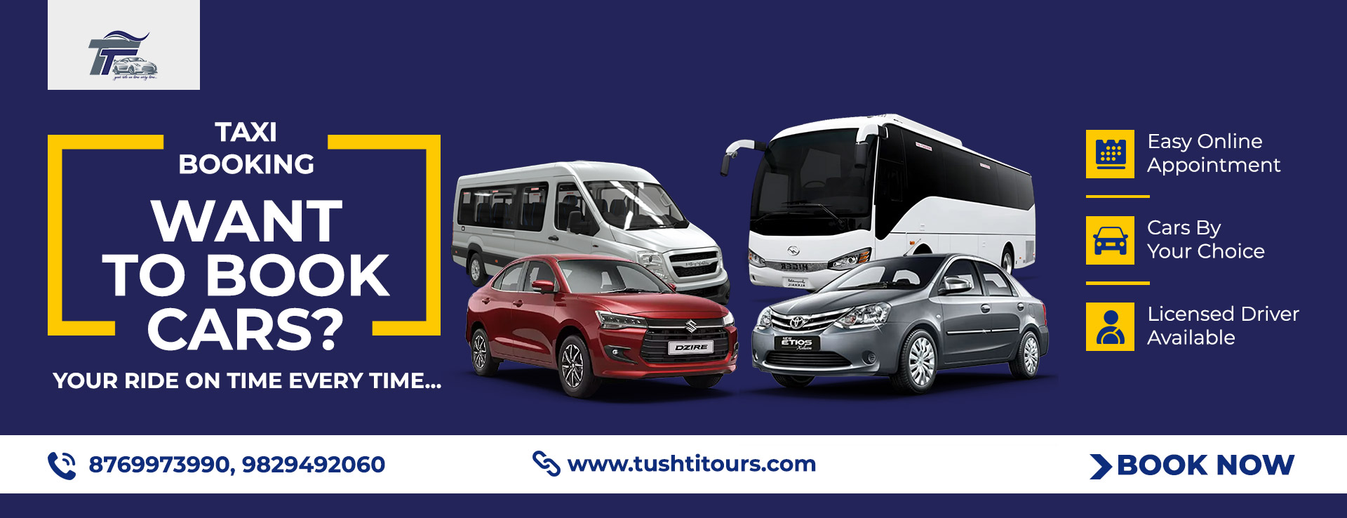 Booking with *Tushti Tours* is effortless. Visit [www.tushtitours.com](https://www.tushtitours.com) to choose your preferred car, or contact us directly for quick assistance.